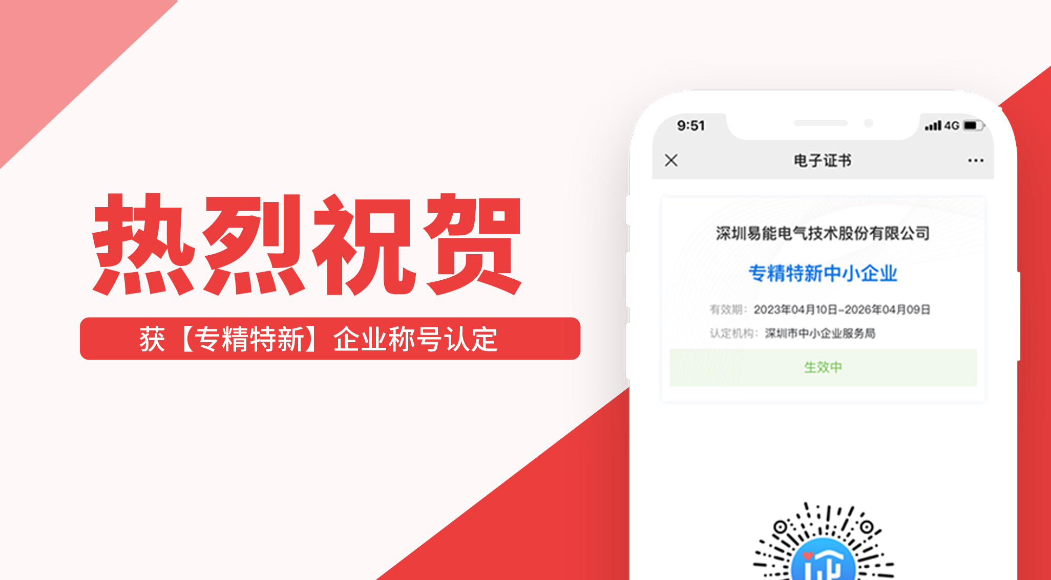 喜報(bào)I易能電氣榮獲【專精特新】企業(yè)榮譽(yù)稱號(hào)